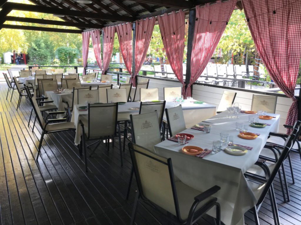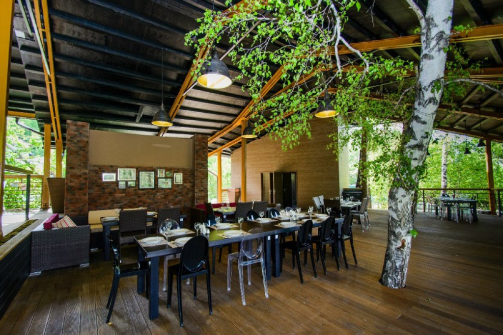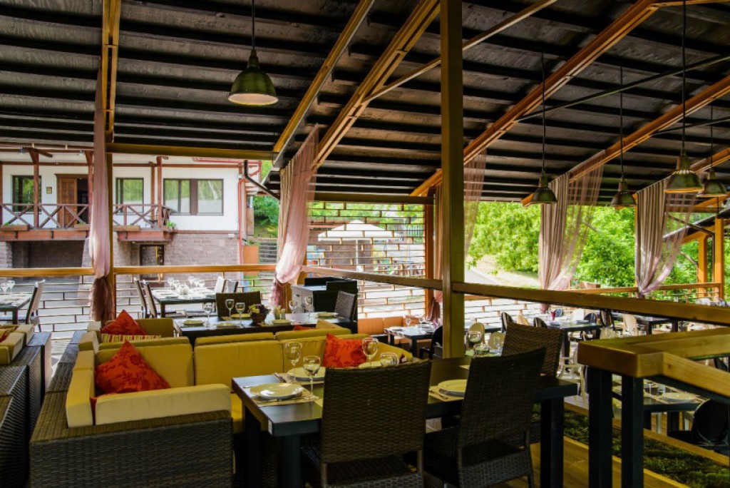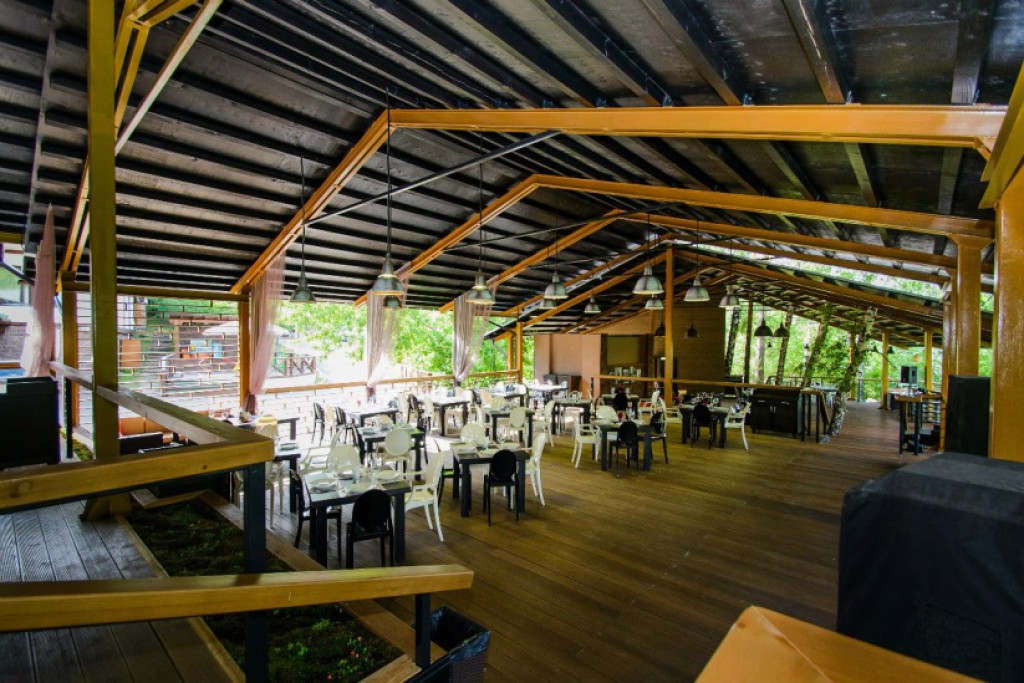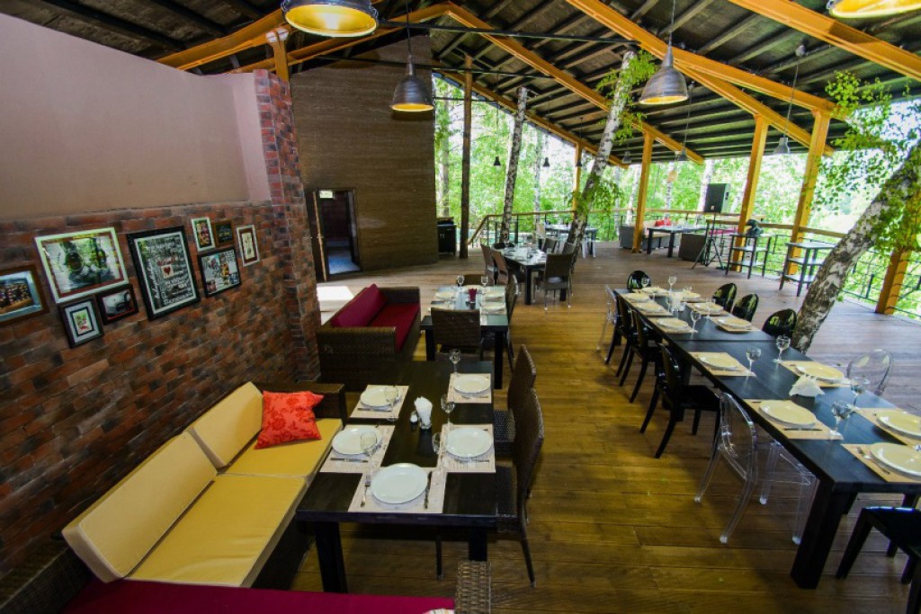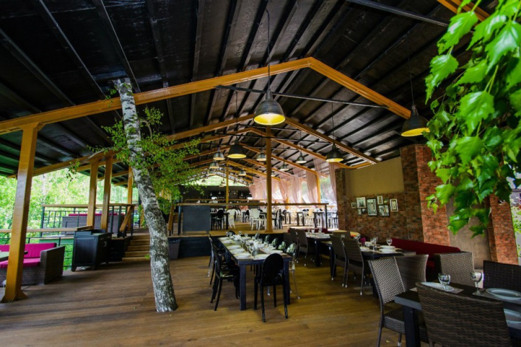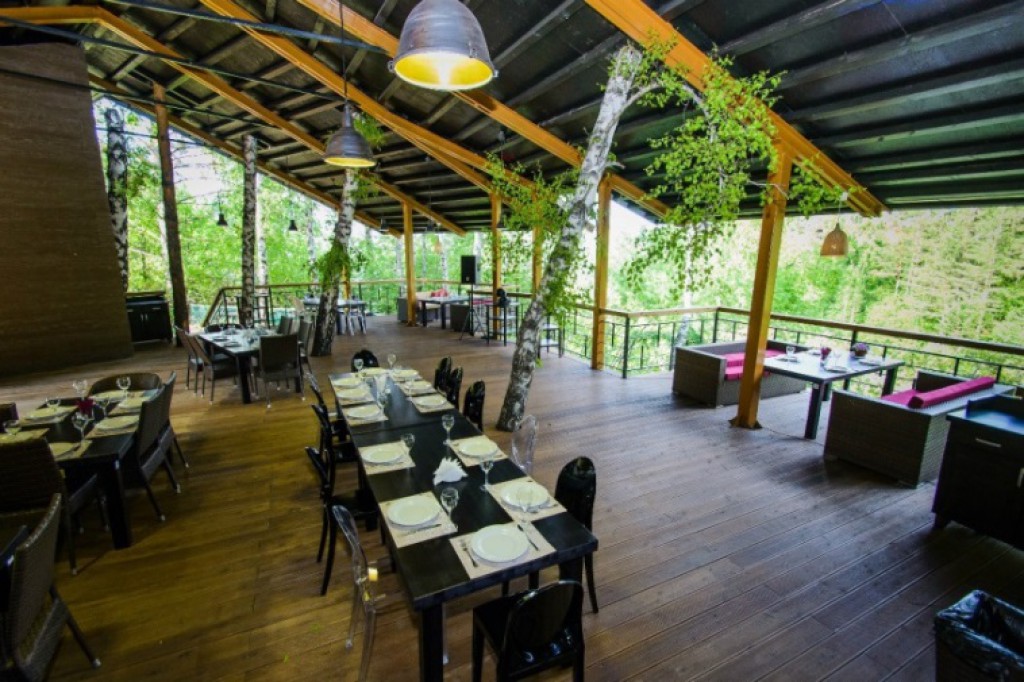 - Открытая веранда, состоящая из 3-х уровней: Вместимость Верхнего уровня – 100 – 120 человек Вместимость Среднего уровня – 75 человек Вместимость Нижнего уровня – 50 -60 человек