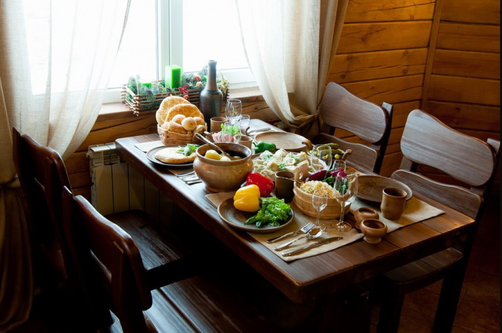 - Мебель: стол, лавочки