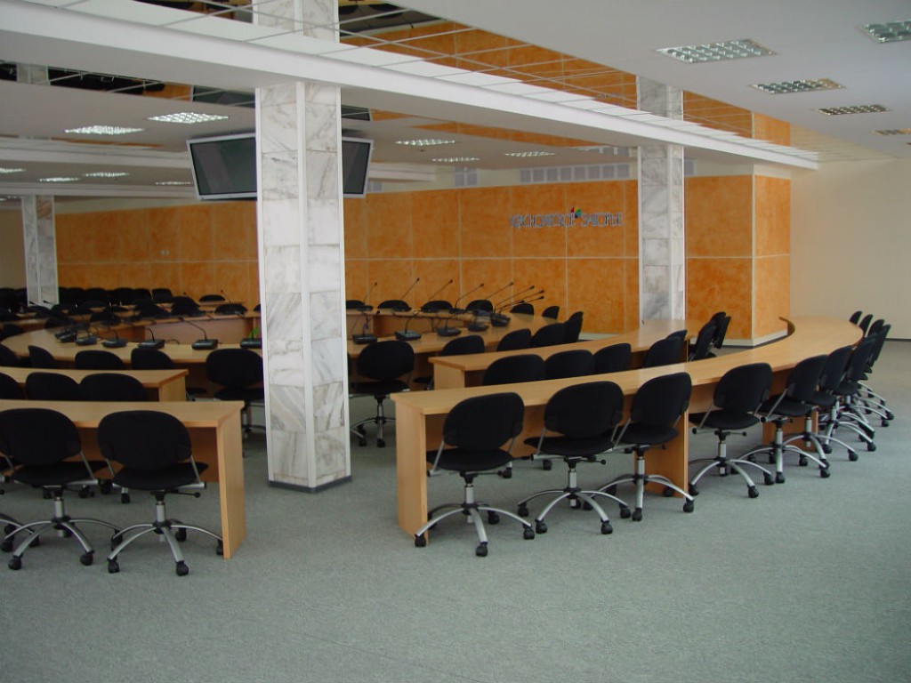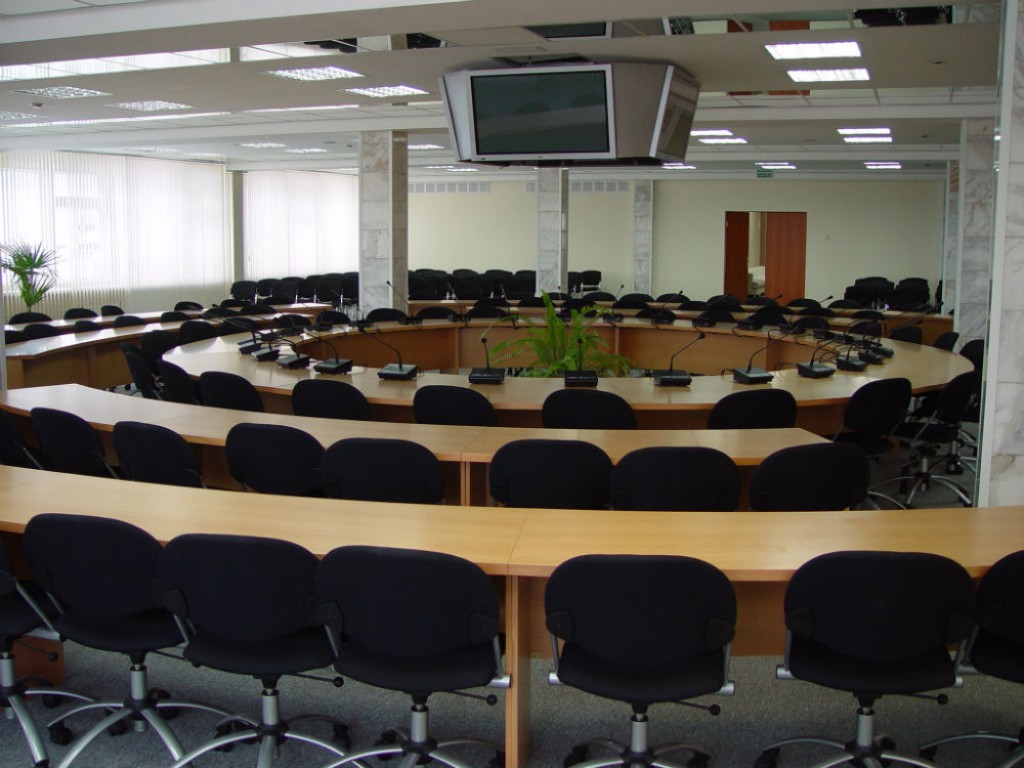 - Электронная конференц-система с персональными микрофонами. Купольная ТВ-камера, современная мультимедийная система с проекционным оборудованием