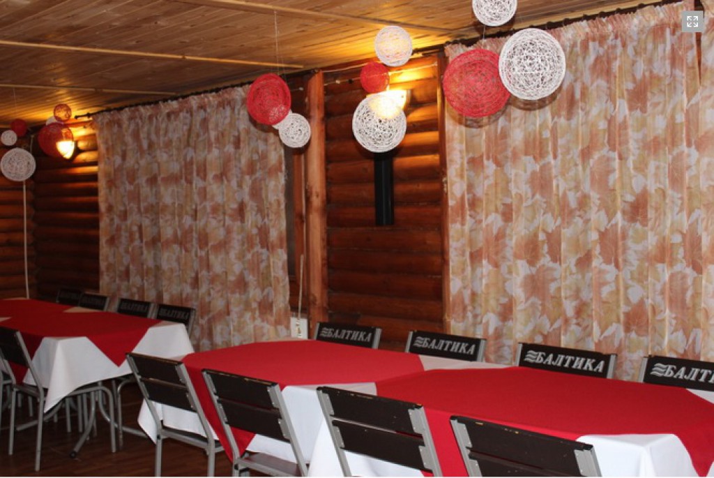- На территории базы расположено вместительное кафе, ресторанчик «Хмель» готов провести любые торжества от пикников до банкетов: Дни рождения, юбилеи, корпоративные праздники
